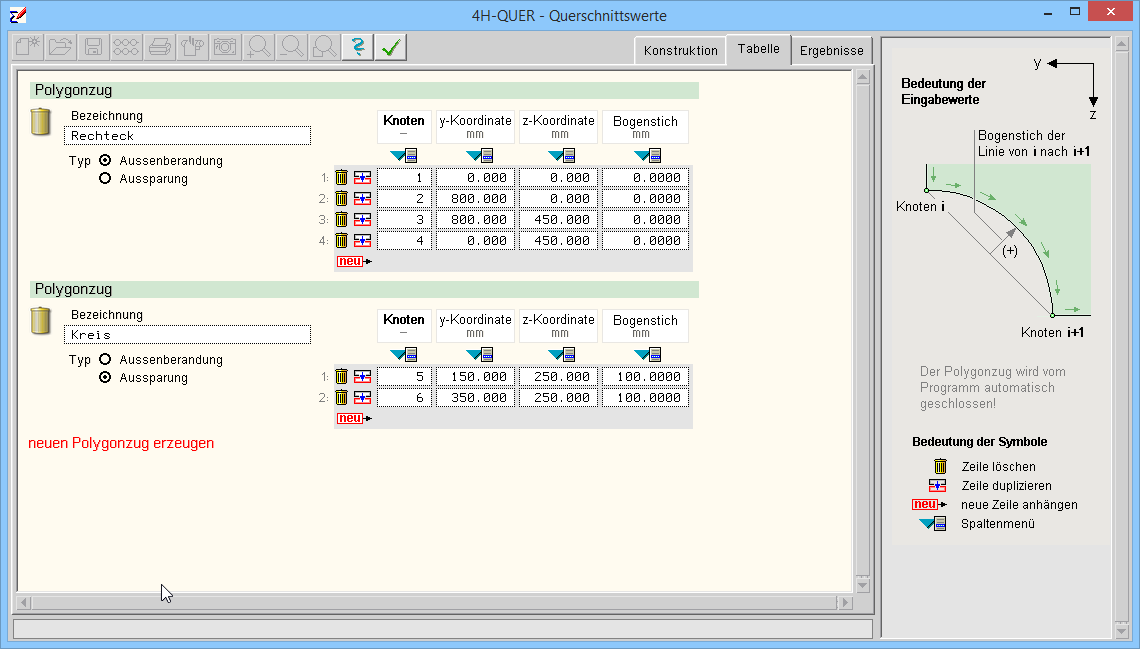 -QUER, tabellarische Bearbeitung dickwandiger Querschnitt